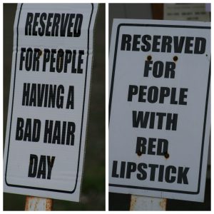 I return to the car and I look at the signs and I laugh. Regardless of what is happening – there is always the ability – the choice, to have a sense of humour.
