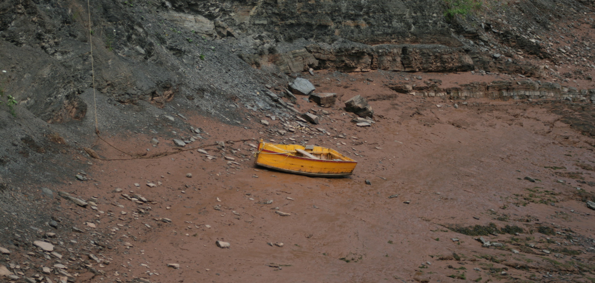 The boat sits on the muddy shoreline. It can take no one anywhere. The tide is out. The boatman is not sitting in his boat waiting; he’s off somewhere doing something else.